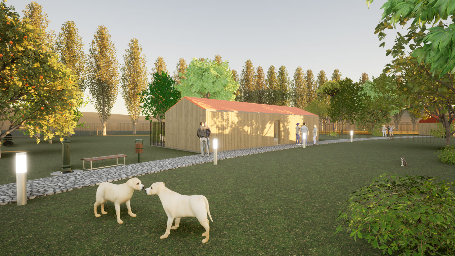 L’area, che si stima di 3 ettari, nascerà come fusione di tre diversi luoghi: un asilo diurno, una pensione e un nucleo ricettivo dedicato a dimostrazioni ed eventi mirati sia alla conoscenza delle diverse razze canine sia a prove agility e mobility.