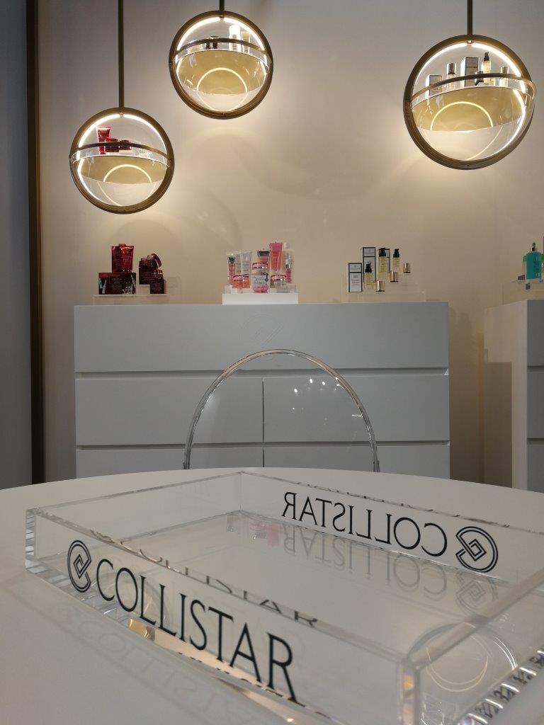 Uno degli obiettivi dell’allestimento era destare la curiosità del potenziale cliente, per questo dall’esterno si è scelto di ricreare un effetto “vedo non vedo”, realizzato grazie a tagli e tende di fili dorati che riportavano il logo Collistar in bronzo.