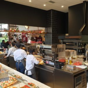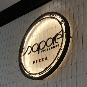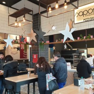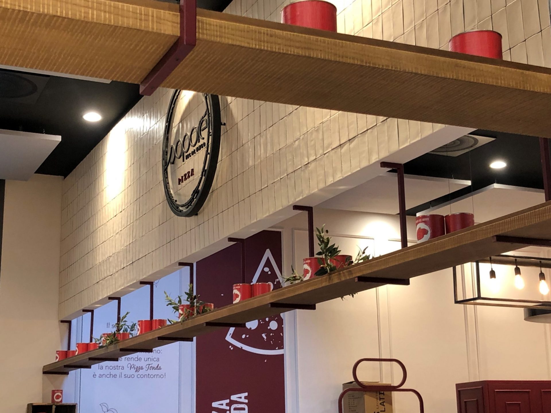 Descrizione: un nuovo concept per un locale “pizza gourmet” all’interno dell’Outlet, che prevede la progettazione completa degli spazi sia della sala che dei back. Applicazione della nuova immagine nei colori, finiture, bancone, tavoli e sedute, luci ed insegne.