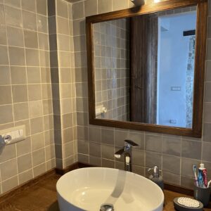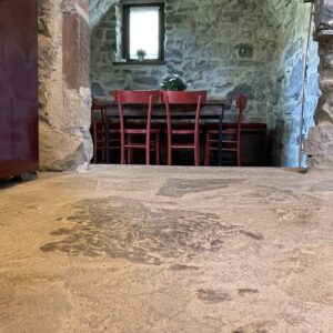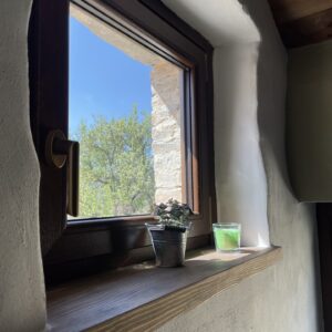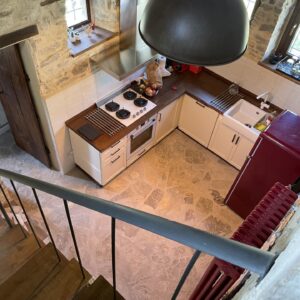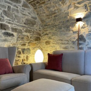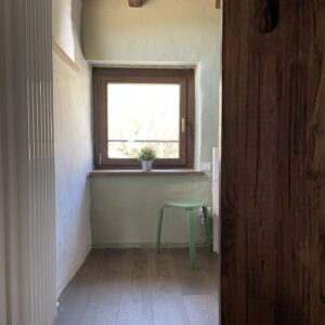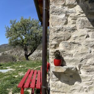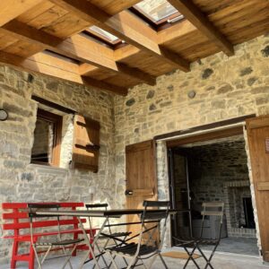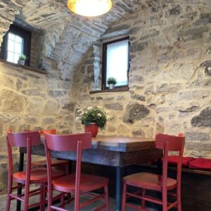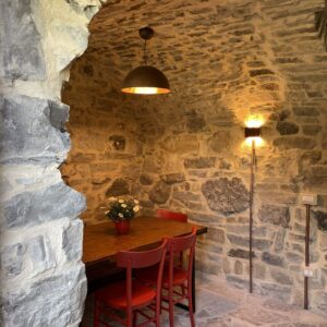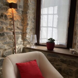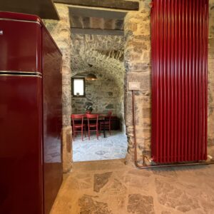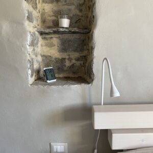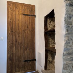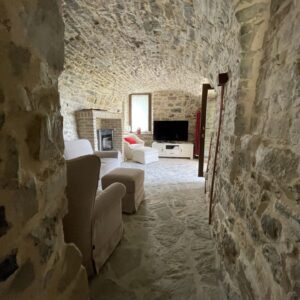 Il rispetto della pietra nelle murature a vista e dei pavimenti del piano terra, il recupero del vecchio camino con inserimento di stufa a pellet, la ricostruzione delle coperture a falde in legno a vista con il riuso delle vecchie travi e dei vecchi coppi, il mantenimento delle imperfezioni originarie, dai fuori piombo di tutte le pareti alle bucature originarie tutte differenti.
