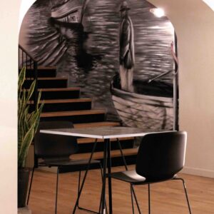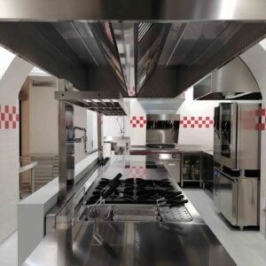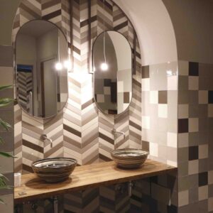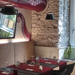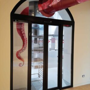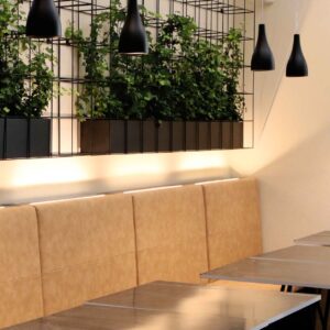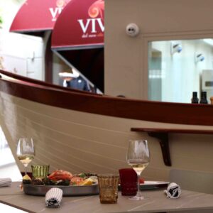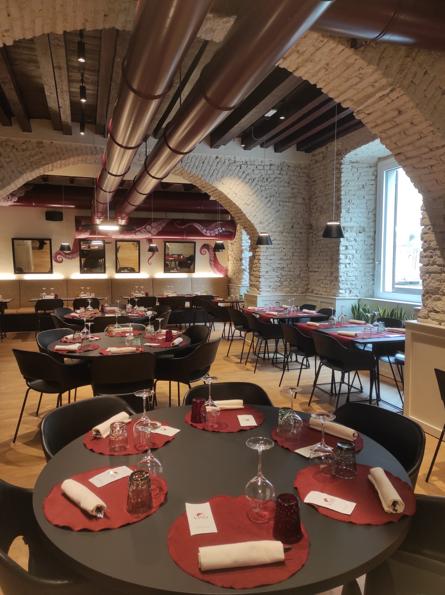 Descrizione: la trasformazione di uno spazio su due livelli da negozio a ristorante in corte per dare un’immagine riconoscibile, elegante e originale al marchio. Grande attenzione alla valorizzazione della location, con i suoi mattoni a vista, solaio in legno e volte a crociera. I colori del brand, le luci, gli arredi, la progettazione su misura, la comunicazione applicata direttamente sulla struttura e sugli impianti a vista, la continuità dei materiali e la cucina sotto vetro accompagnano il cliente in un’esperienza immersiva che coinvolge i 5 sensi. La corte privata, con il caratteristico gozzo, completano un ambiente esclusivo. Il tutto concepito e progettato grazie ad un’importante coordinamento tra imprese e artigiani legate alla proprietà dell’immobile e al brand.